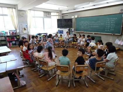 3・4時間目頃には、お誕生日の子たちを祝ったり、みんなで遊んだり・・・担任の先生と子どもたちが楽しんでいます。