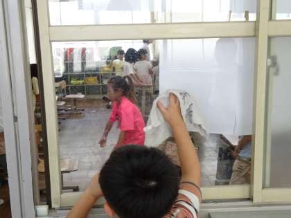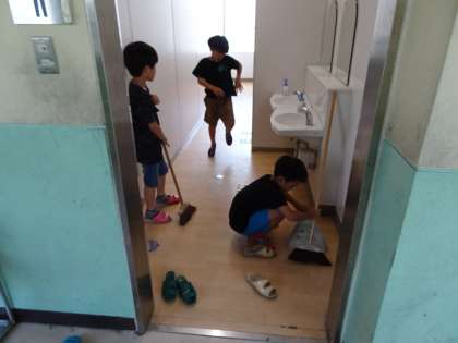 大掃除の時間・・・教室の窓や廊下、トイレなど、それぞれの掃除場所をみんなピカピカにしてくれています。これで、夏休み明けの2学期も、気持ちよく迎えられますね。