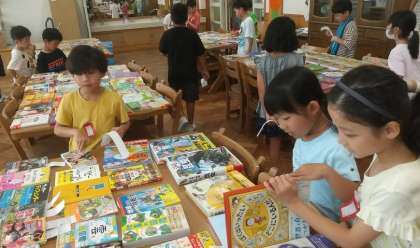 たくさん並んだ本を見て、子どもたちからは歓声が上がりました。