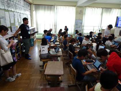 5時間目、小中連携の取組の一つとして、深草中学校の先生が授業を見に来てくれました。どの学年でも、授業の中でGIGA端末をどんどん活用しているようです。