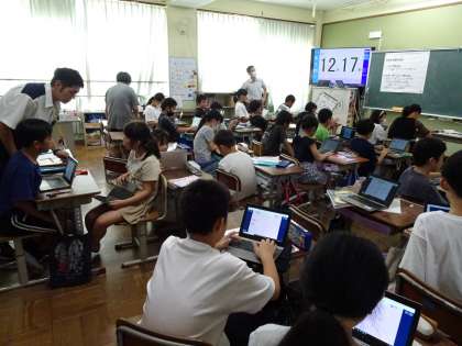 8月31日(木)5校時「深草中学校の先生が授業を見に来てくれました」2学期も、GIGA端末をたくさん活用しています!