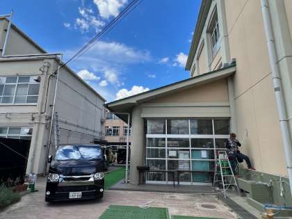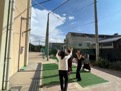 夏休み中に、運動場の手前に「ミストシャワー」を設置!