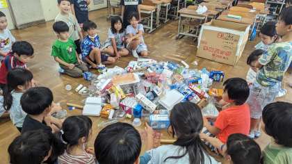 お家の方のご協力のおかげで,山ほどのガラクタが集まりました。