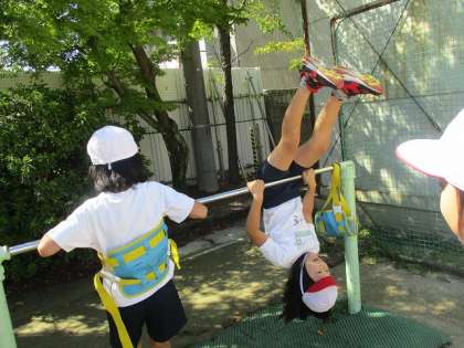 さわやかな気候の中、鉄棒学習に取り組んでいます。逆上がりや新しい技に挑戦しています。休み時間にも友だちと技の習得に向けて、熱心に練習している子どもたちもいます。