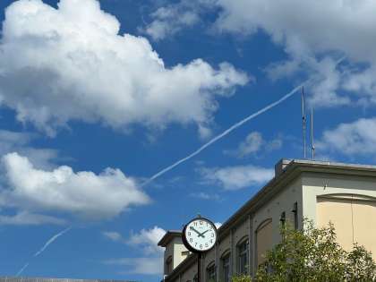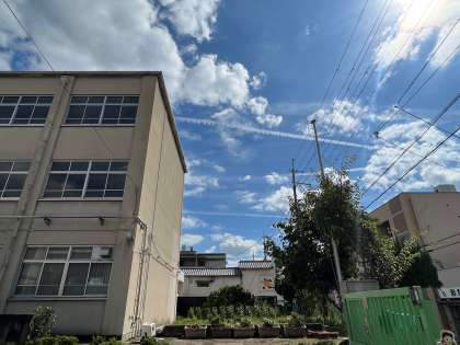 9月13日(水)5時間目の授業が始まるころ、空を見上げると・・・キレイなひこうき雲が!