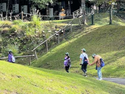 班で活動している「スコアオリエンテーリング」は、地図をみながら山の家の敷地内を移動していきます。班で協力して活動できているようです。