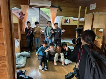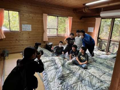 10月10日(火)5年花背山の家 1日目「宿泊棟の部屋ごとに…写真屋さんの前でピース!」