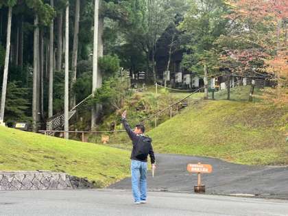 その後は、建物の外へ…一人で冒険の森へ入っていきました。今日の活動が安全にできるかどうか、活動場所の確認に行っています。今日は、「冒険の森」での活動、できるかな?