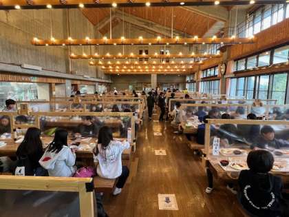 子どもたちは、山の家の食堂の使い方にも慣れてきました。バイキング形式でおかわりをしたり食器を返却したりする時のみんなの動きがスムーズになってきています。食堂内でも、落ち着いて行動できています。