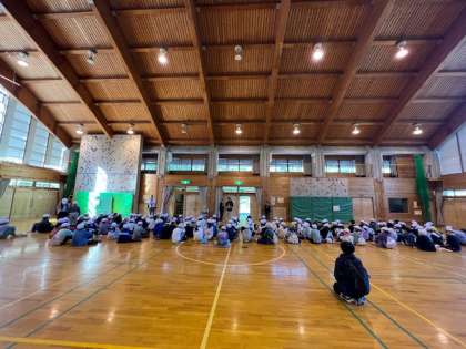 昨日の予定を延期していた「冒険の森」の活動は、今日も雨の影響でできなくなったため、プレイホール(体育館)でレクリエーションを楽しむことになりました。