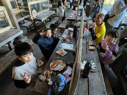 10月12日(木)5年花背山の家 3日目「朝食〜パックドック作り 3〜」