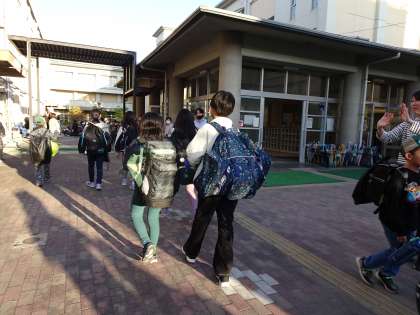 交通渋滞もあり、予定より少し遅くなりましたが、無事に学校に到着しました。多くの保護者の方、教職員が出迎えてくれました。