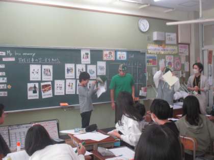 カードに示されたものをグループで演技をして、他のグループに発表しました。
