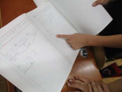 図から式と答えを求めて、友達同士で交流しました。