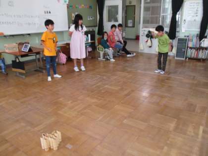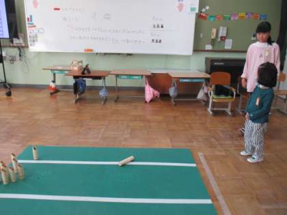わかばでこの2学期から取り入れたスポーツ「モルック」。