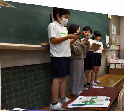 始めは緊張の面持ちですが、だんだん気持ちが乗ってきて、楽しそうに読んでいます。3年生のしっかりした姿です。