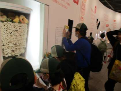 作った後は展示を見てどうしてカップヌードルは作られたのか、どんな試行錯誤を行っていたのかなどを調べました。