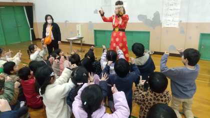1月30日に、モンゴルパートナーシップ研究所の方に来ていただき、モンゴルのことについて教えていただきました。2年生の国語「スーホの白い馬」にも出てくる馬頭琴を弾かせていただいたり、「ゲル」を建てたり、モンゴルのじゃんけんを楽しんだりしました。素敵な体験ができました。