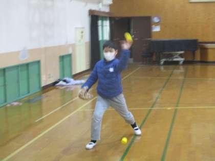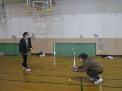 学校に届いた大谷グローブを使ってキャッチボールをしました。