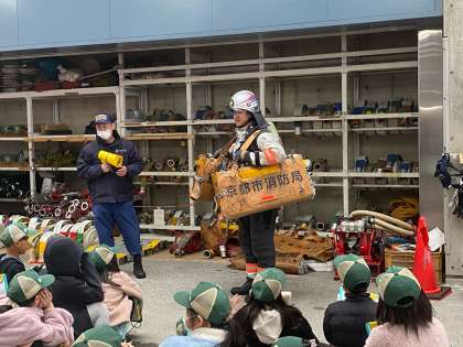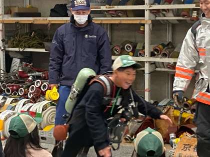 約30秒で防火服に着替える様子に子どもたちはまたまたびっくり。