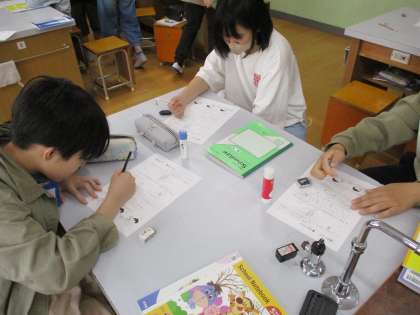 プリントを解きながら、「うわ、わからへん・・・」「これは覚えてる!」など話しながら取り組んでいました。