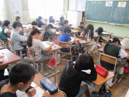 こちらの学級でも、どんな気持ちが大切なのかがたくさん出ていました。『自分に負けない!』『ほどほどが大切。』など、どれも素晴らしい意見が出ていました。