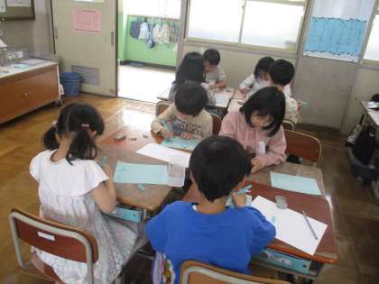 書写で「「かく」のほうこうに気をつけてかこう」という学習をしました。水筆を使って「とめ」「はらい」などに気を付けて練習をし、最後に鉛筆でも漢字の練習をしました。