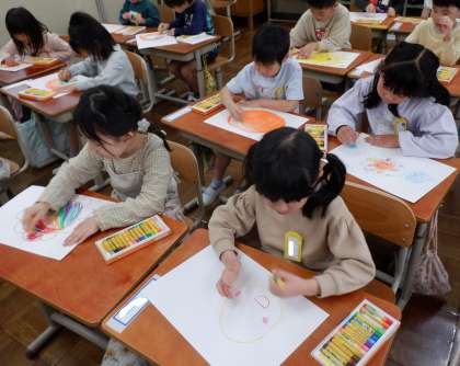 イメージを膨らませ、思い思いのおひさまの絵をパスで描きました。
