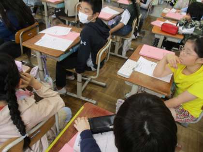 4年生の総合の学習では、『防災』をテーマに進めていくことを知りました。どんなことを学びたいか、何を知りたいのかしっかりと話し合いました。