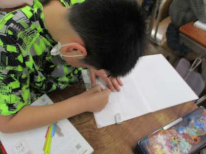 点対称な図形を書いていたつもりがいつの間にか線対称な図形になっていたりと難しいですが、頑張っていました。