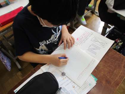 算数では対称な図形の学習をしています。