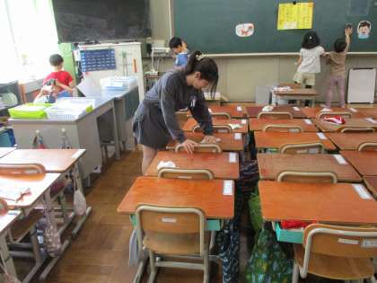 6年生は1年生の教室や廊下掃除のお手伝いもしています。
