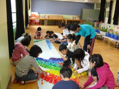 先日話し合って決めた「学級目標」を大きな模造紙に仕上げていきます。