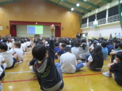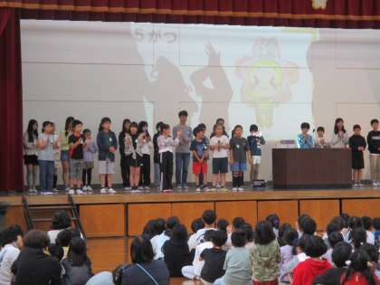 はじめに代表委員が決意表明をしました。全校児童の前で立派に発表する姿がとてもよかったです。また、児童会からの提案について一生懸命手を挙げて意見を発表していました。さすが、かっこよかったです!