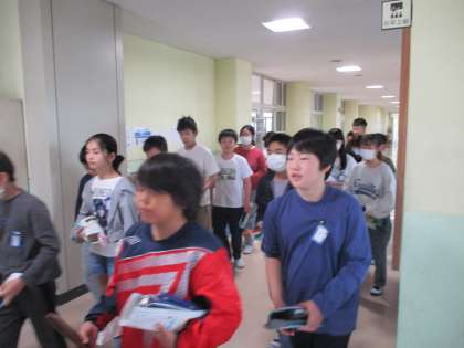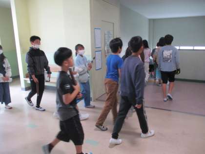先生と一緒ではなく、自分たちで廊下に2列で並び移動教室へ行き、ベル着をします。