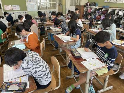折れ線グラフの学習が進んでいます。今日は折れ線グラフのかき方について学習をしました。目盛りに注意しながら、グラフをかけるといいですね。