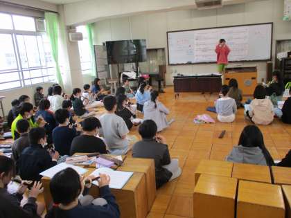 各クラスごとではなく、2クラスごとに合わせて練習しました。
