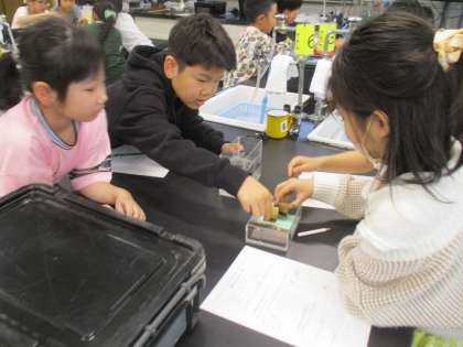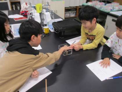 科学センター学習で、樹木について学びました。木は色々な種類があり、重さ、葉の形、色、匂いなどに違いがあることを知りました。