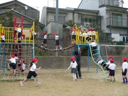 学校にはたくさんの遊具があります。