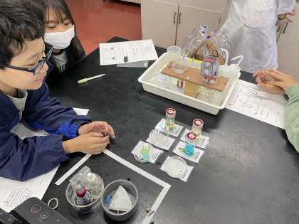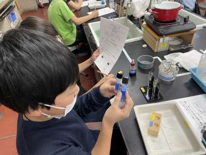 1組では、普段使っている石鹸や洗剤は、なぜ汚れが落ちるのか、種類はどのぐらいあるのか、いつごろから使われていたのか等学習しました。