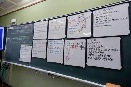 それぞれが気づいたことを、班で出し合い、ホワイトボードにまとめました。