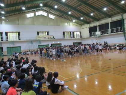 5年生は、大人気ゲームのBGMに合わせて、クイズを出して楽しました。