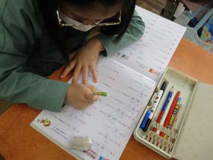 3年生のおさらいを丁寧に進めました。少し忘れている字もあったので、しっかりと復習を進めて字を覚えてほしいと思います。