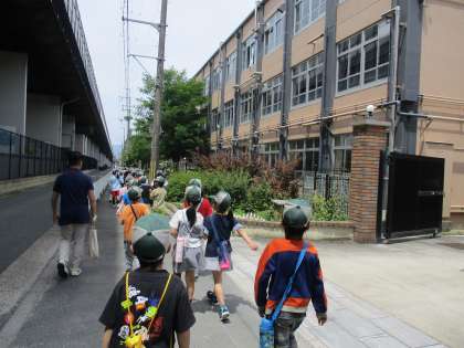 校区のまちを歩いて探検しました。たくさんの素敵なところを見つけていました。