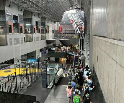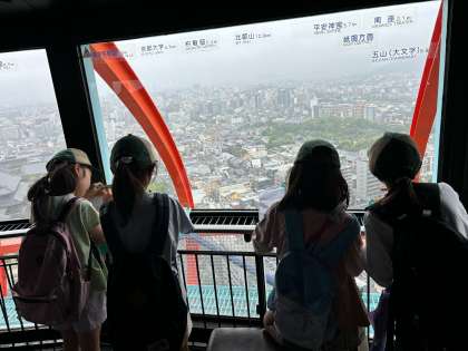 社会見学で、京都タワーに行ってきました。京都タワーのまわりには何があるのか、実際京都タワーの上から見ることができました。また、京都駅の様子も確認することができ、気づいたことを沢山見つけることができました。