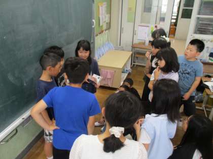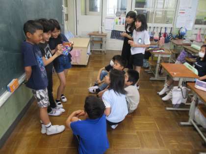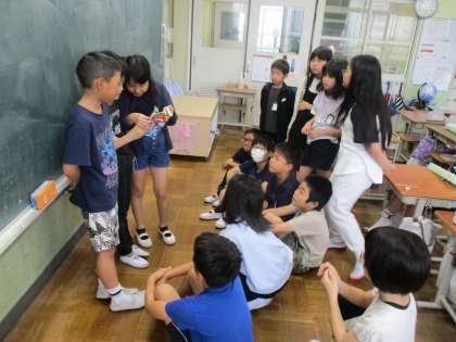 今日は雨ということで、クイズ係がみんなのためにクイズ大会を開いてくれました。自由参加型でしたが、みるみる人が集まり、大盛り上がりでした。ありがとうクイズ係の人たち!