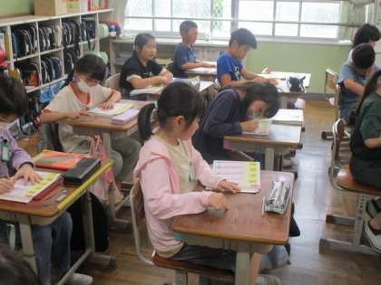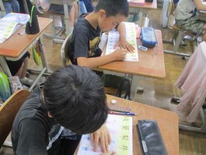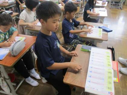 学習が始まるとどんどん自分で進めています。声に出して画数を確かめ、丁寧に指でなぞりながら進めていました。
