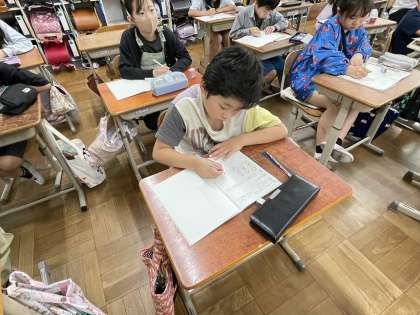 ある日の算数の時間をのぞいてみると…。72このあめを3人兄妹で分け合う問題を考えていました。3兄妹がけんかせず、平等に分け合うためにはどうすればよいかを考えました。みんな一生懸命問題に向き合っていました。