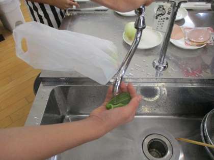 種が上手く取り切れていない状態で切ってしまったり、指が届かないところにある種をどのようにして取ればよいか困っていたりと様々でした。指が届かないところの種は水で流せばとれると知り、水で流してきれいに取っていました。