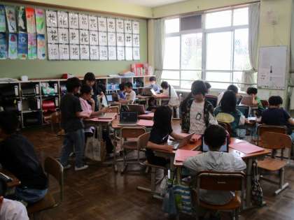 現状をまとめることができたグループは、もっとどうすれば良いのか意見を出し合って手直しをしています。話し合いが深まるとこでより良いものが完成することでしょう。